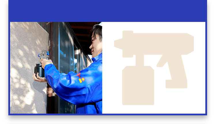 吹き付け塗装とは工業用のスプレーを使って塗料を噴霧して外壁を塗っていく方法です。