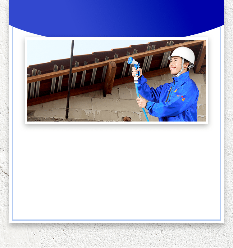 散水調査とは、原因となっている可能性がある場所に散水をして雨漏りを再現する方法です。実際に雨漏りを再現することで、調査員の経験や技量に依存しない、確実性の高い調査方法となっております。